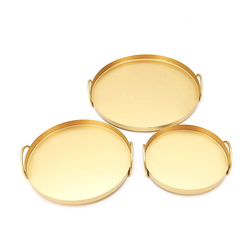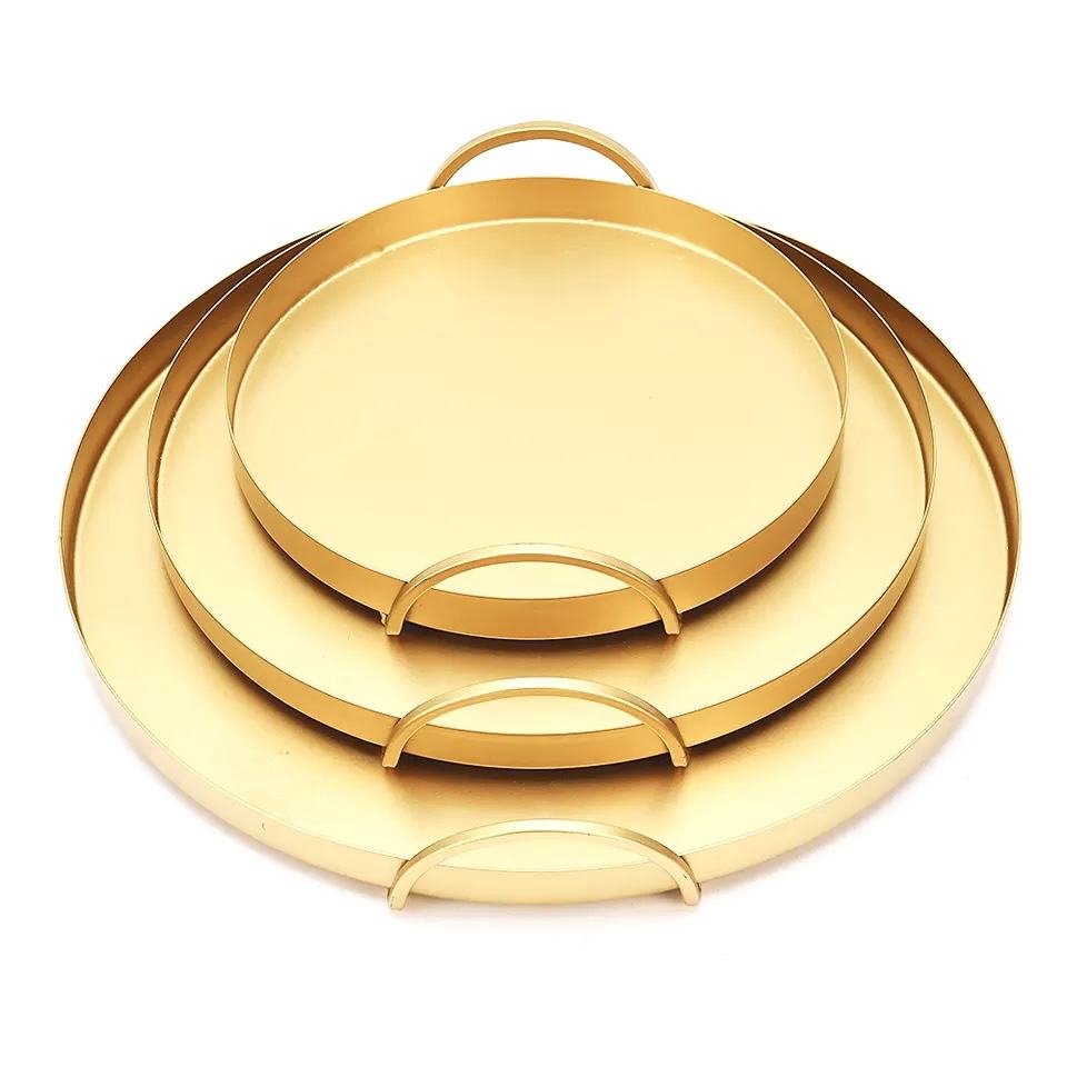 ถาดเสิร์ฟทองเหลืองคุณภาพสูง ชุดถ้วยเค้กโลหะสีทอง สไตล์วินเทจโมเดิร์น สำหรับใช้ในบ้าน สำนักงาน ร้านอาหาร และโรงแรม