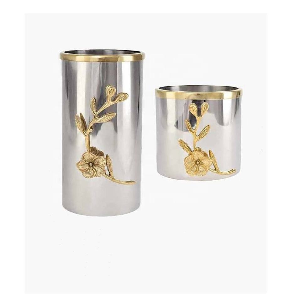 แจกันทองเหลืองและสเตนเลสขอบสีทองแจกันตกแต่งโต๊ะสำหรับตกแต่งบ้านสำนักงานห้องนั่งเล่น