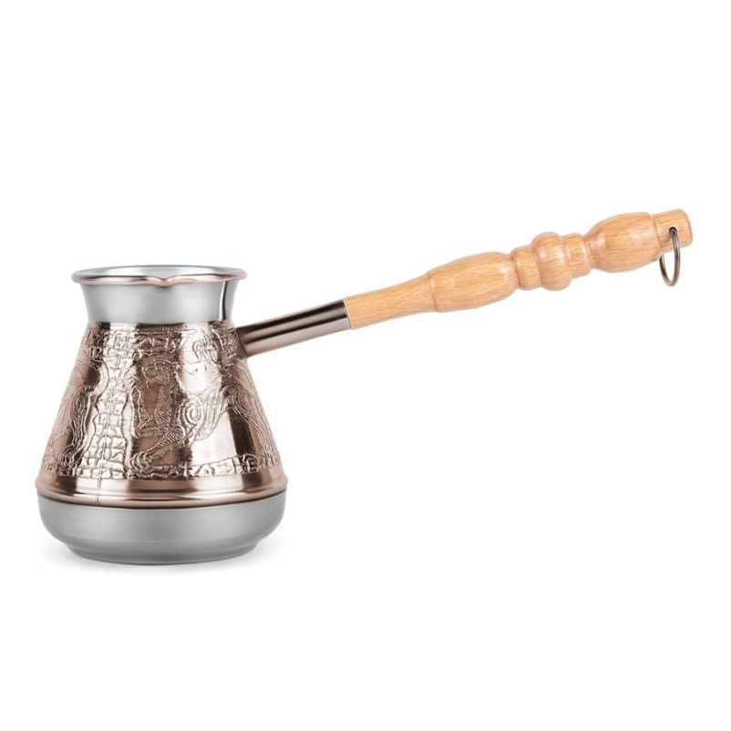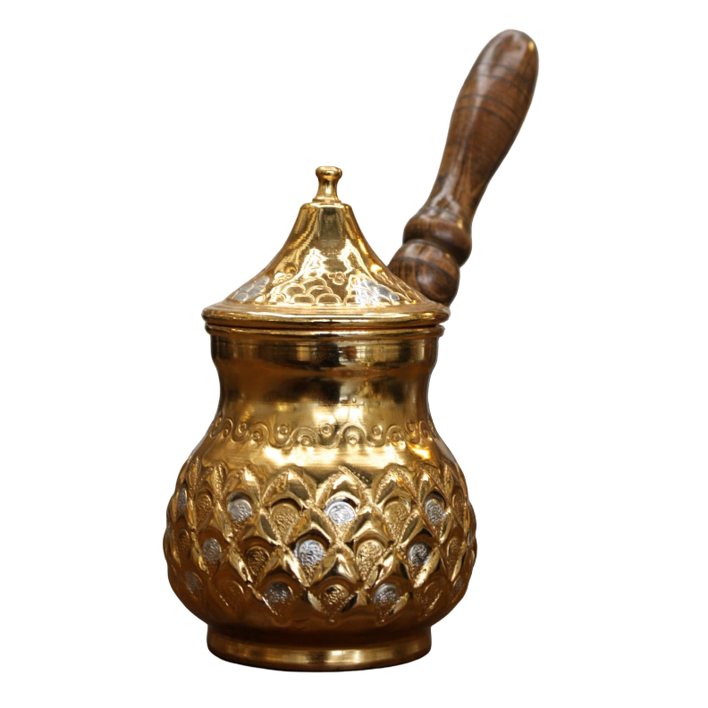 กาต้มกาแฟตุรกีทองเหลืองคุณภาพสูง ขัดเงาสำหรับดื่มกาแฟ กาต้มกาแฟตุรกีแบบวินเทจ อุปกรณ์ครัว