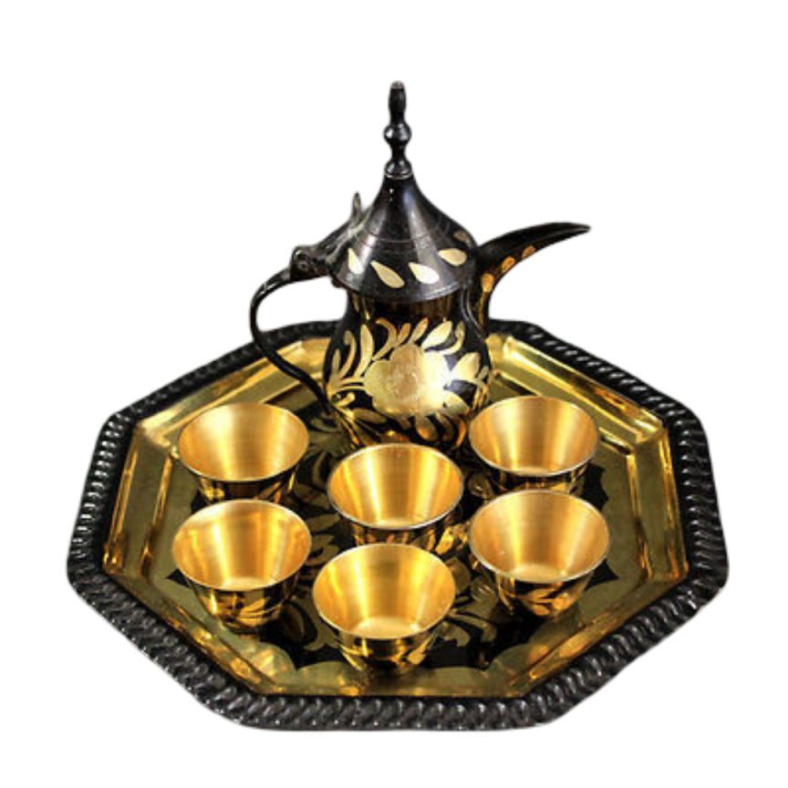 ชุดกาแฟหรือชุดน้ำชาทองเหลืองวินเทจคุณภาพสูง พร้อมลวดลายแกะสลักสวยงาม ขัดเงาสำหรับใช้ในบ้านและโรงแรม
