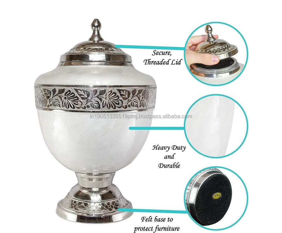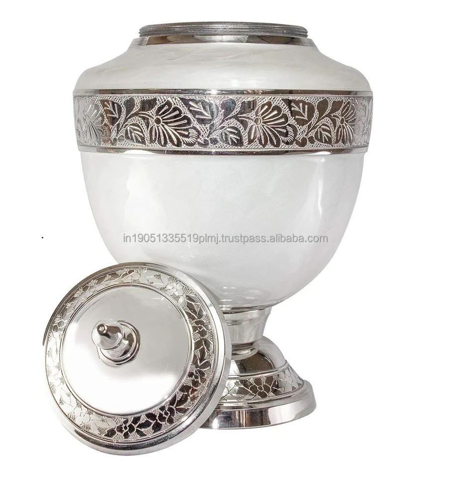 โกศบรรจุอัฐิทองเหลืองคุณภาพสูง ขายส่ง สลักลายมีนาสีขาวมุก สำหรับบรรจุอัฐิมนุษย์หรือสัตว์เลี้ยง ของที่ระลึกสำหรับงานศพ