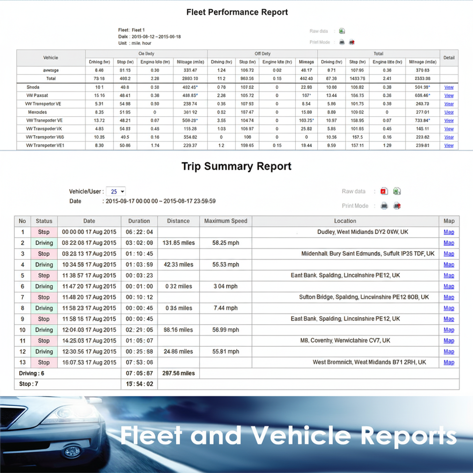 Realtime Tracking, Breadcrumb Trails, Geo-fence, Trip Reportsการรวมกัน