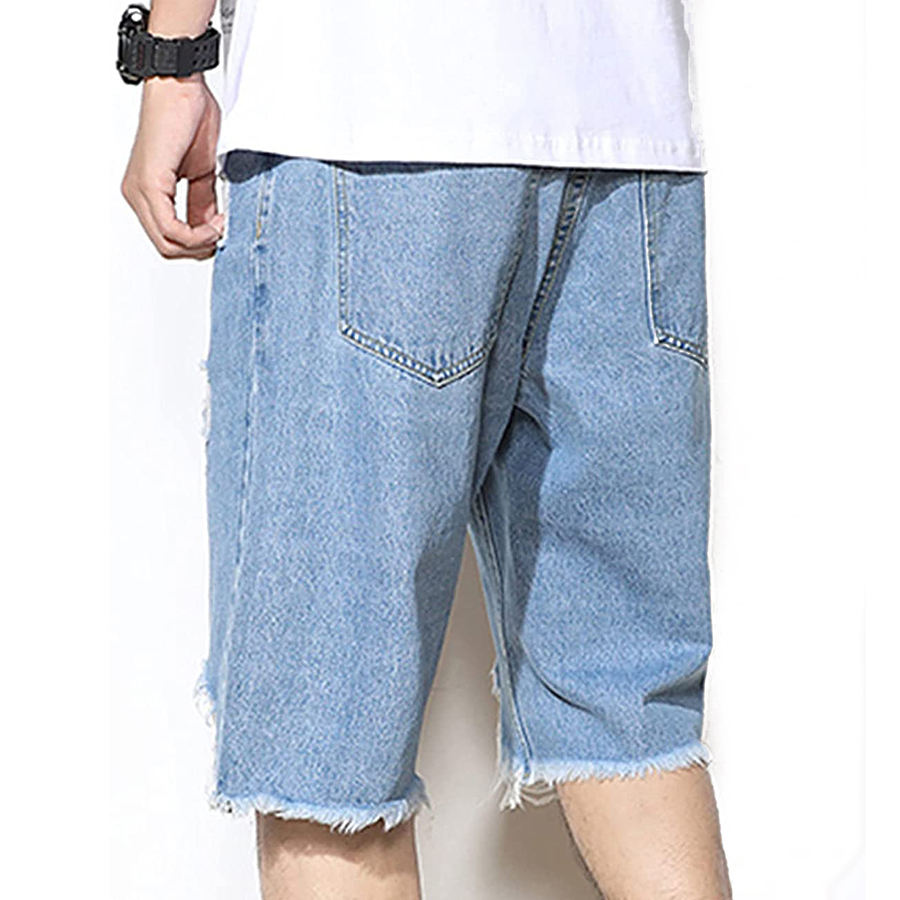 กางเกงขาสั้นผ้ายีนส์สีฟ้าระบายอากาศได้ดีสำหรับผู้ชายไซส์ใหญ่พิเศษกางเกงขาสั้นผู้ชายใส่สบายและมีสไตล์