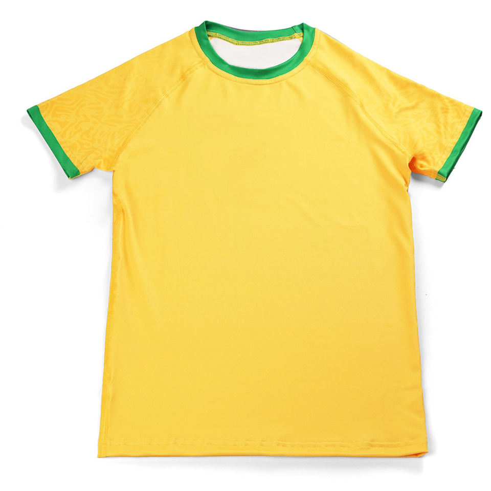 เสื้อรัดกล้ามเด็กสำหรับ BJJ MMA คุณภาพสูง ระบายอากาศได้ดี เป็นมิตรกับสิ่งแวดล้อม สีเหลือง คอกลม แขนครึ่งตัว ทรงเข้ารูป สวมใส่สบาย เหมาะสำหรับออกกำลังกาย