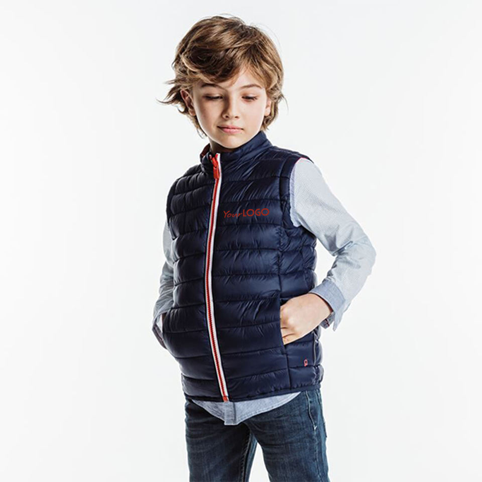 เสื้อกั๊กเด็กแบบมีซิป คอตั้ง บุนวมอย่างดี ระบายอากาศได้ดี เป็นมิตรกับสิ่งแวดล้อม กันน้ำ สำหรับฤดูหนาว แบบสั่งทำได้