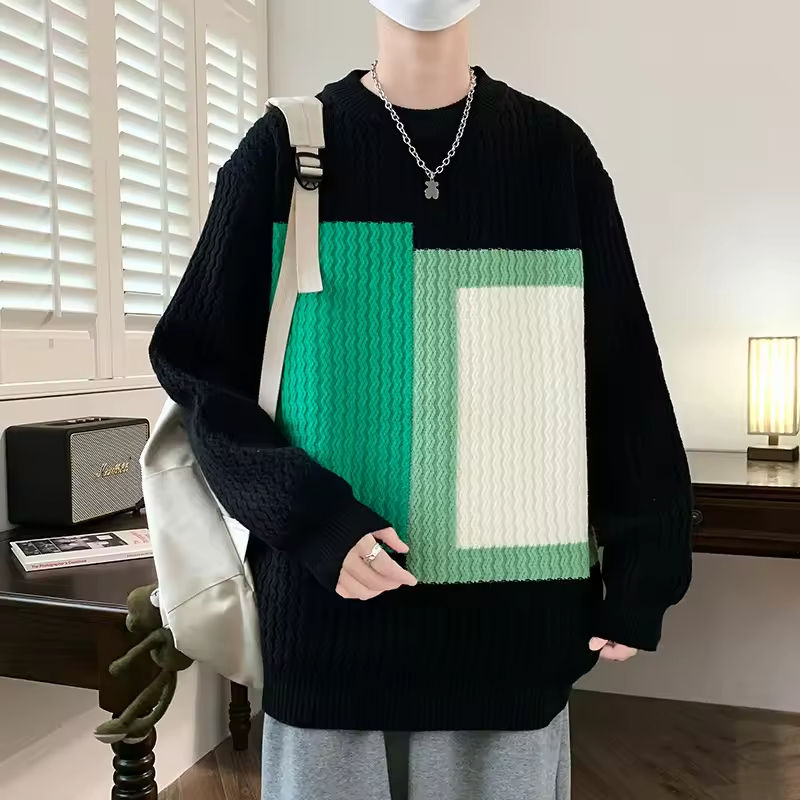 เสื้อสเวตเตอร์ไหมพรมอะคริลิกคุณภาพสูง ระบายอากาศได้ดี ทรงโอเวอร์ไซส์ ลายตัวอักษรไล่เฉดสี คอกลม สำหรับผู้ชาย เหมาะสำหรับฤดูหนาว