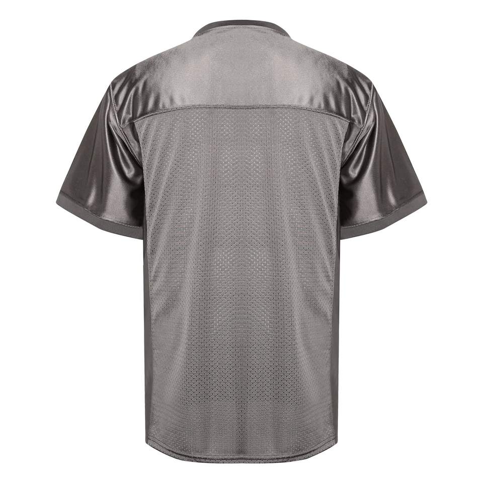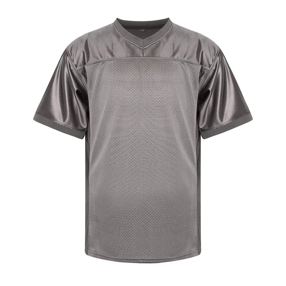 เสื้อเจอร์ซีย์อเมริกันฟุตบอลตาข่ายสีเทาคุณภาพสูง ระบายอากาศได้ดี ไซส์พลัส พร้อมโลโก้ออกแบบเอง ปี 2027