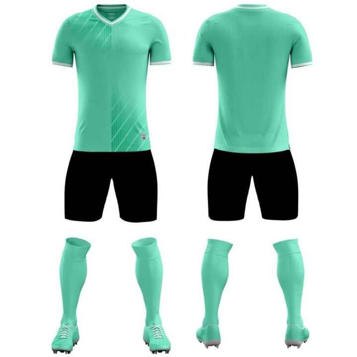 ชุดเล่นฟุตบอลผ้าโพลีเอสเตอร์ระบายอากาศได้ดีเสื้อเจอร์ซีย์สโมสรฟุตบอลสำหรับเด็กชุดฟอร์มฟุตบอลของผู้ชายและผู้หญิง