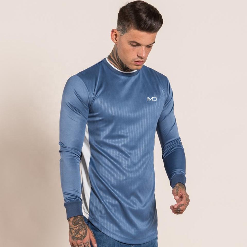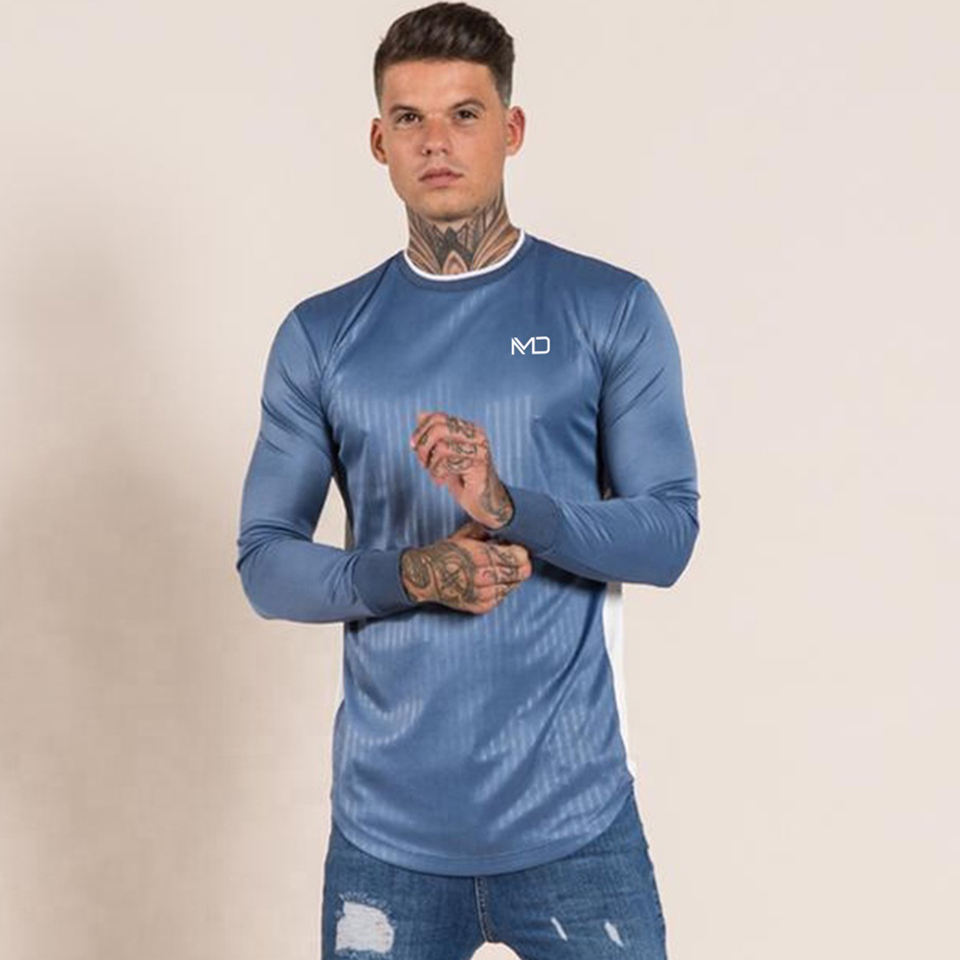 เสื้อยืดแขนยาวผู้ชายคุณภาพสูง ระบายอากาศได้ดี ผลิตจากโพลีเอสเตอร์/คอตตอน คอกลม ทรงสปอร์ต สำหรับออกกำลังกาย ไซส์ใหญ่ แห้งเร็ว