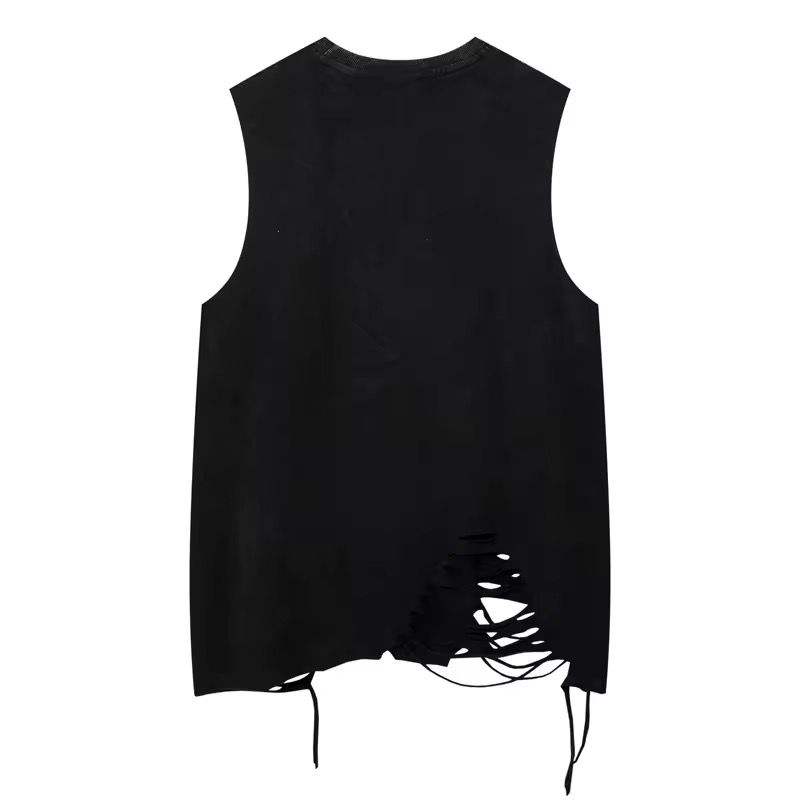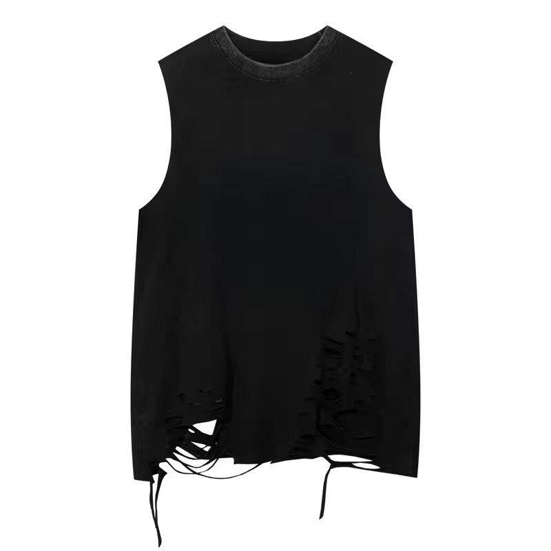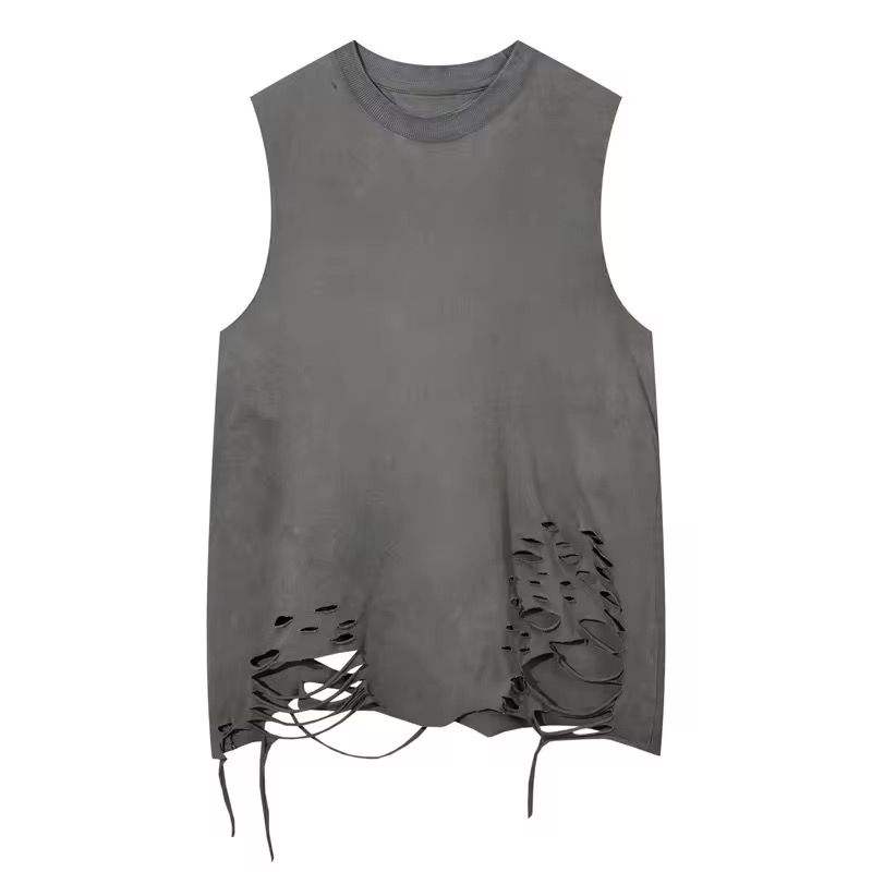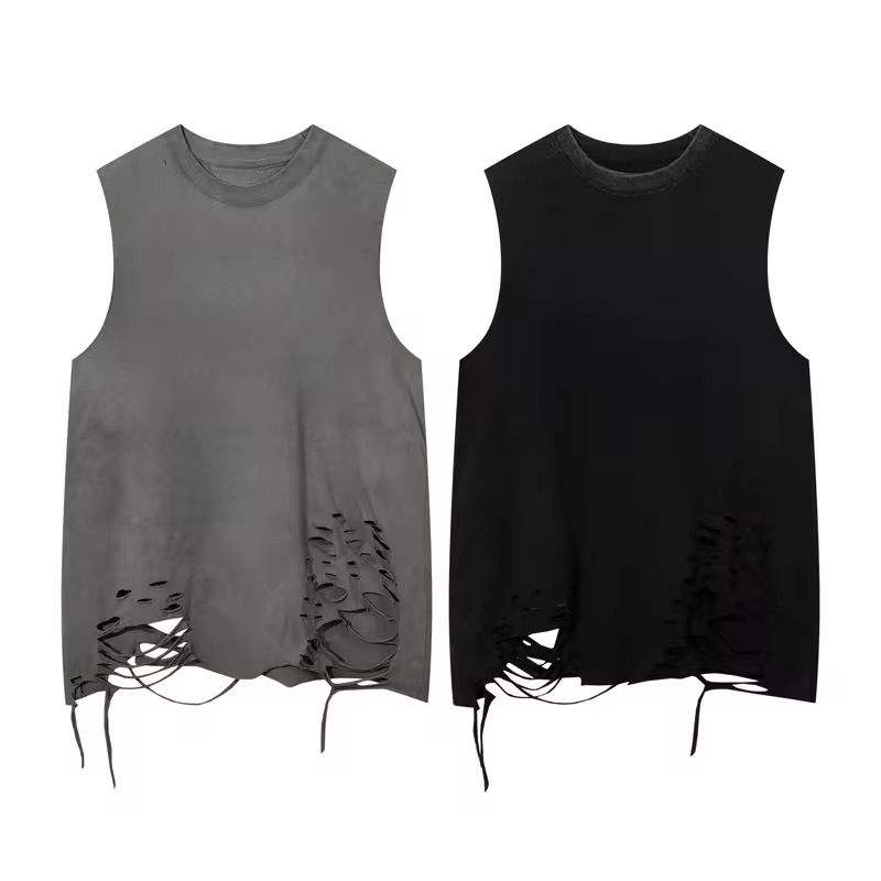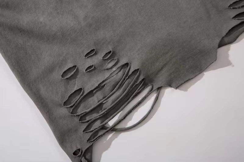 เสื้อกล้ามคอกลมคุณภาพสูง ระบายอากาศได้ดี แห้งเร็ว สไตล์สตรีทแวร์ ดีไซน์ขาดๆ แบบขายส่ง เสื้อยืดลำลองผู้ชาย ผ้าโพลีเอสเตอร์ยืดหยุ่น ทอแบบริบ