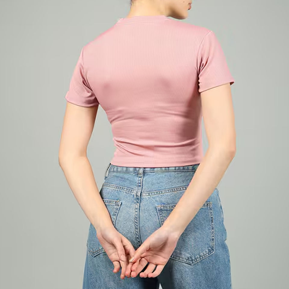 เสื้อครอปฟิตเนสผู้หญิงระบายอากาศได้ดีเสื้อออกกำลังกายคอกลมแขนสั้นเข้ารูปสไตล์น่ารัก