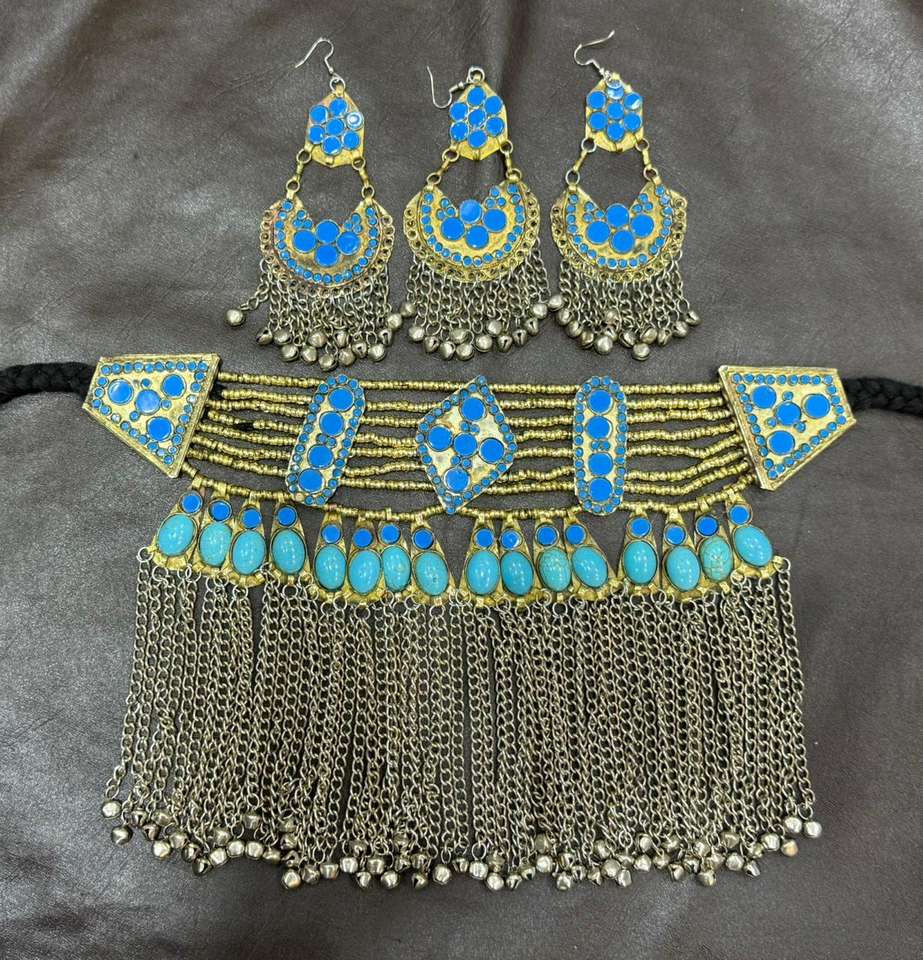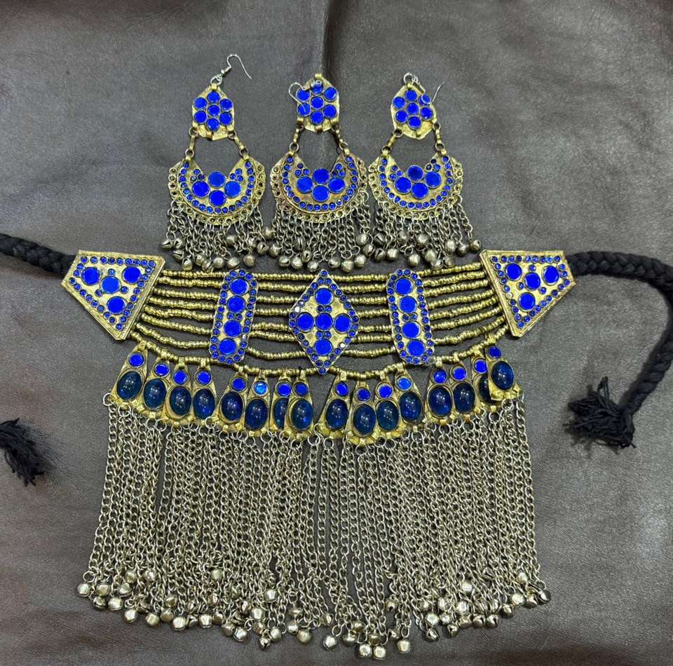 ชุดเครื่องประดับวินเทจสไตล์อัฟกานิสถานสำหรับเจ้าสาวชุดเครื่องประดับสไตล์วินเทจของชนเผ่าคูจิทำด้วยมือสีทองสวมใส่สบาย