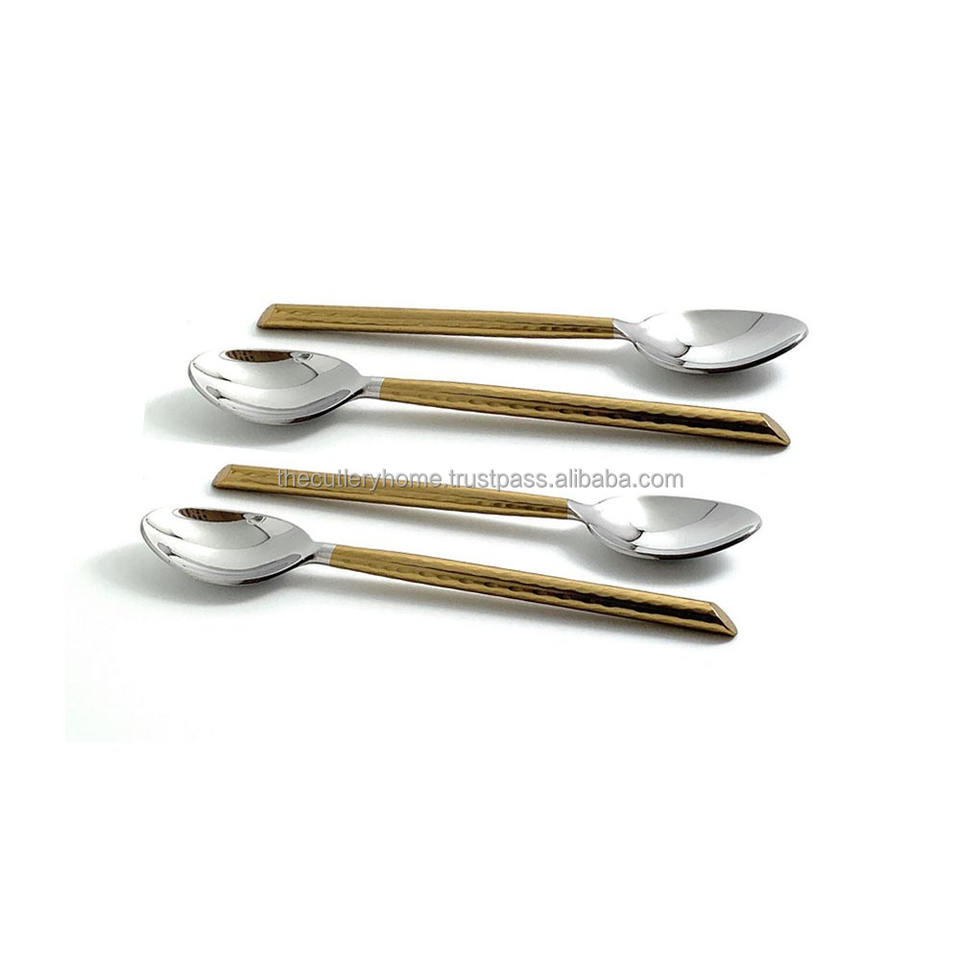 ชุดช้อนขนมทองเหลืองสีทองสดใสมีดีไซน์นกยูงทำด้วยมือลายนูนช้อนคุณภาพสูง