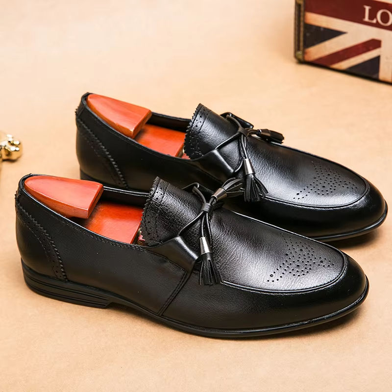 รองเท้าอ็อกซ์ฟอร์ดแบบสวมสำหรับผู้ชายคุณภาพสูงสไตล์อังกฤษ บุหนังแท้กันน้ำ เหมาะสำหรับใส่ทำงาน งานทางการ งานแต่งงาน