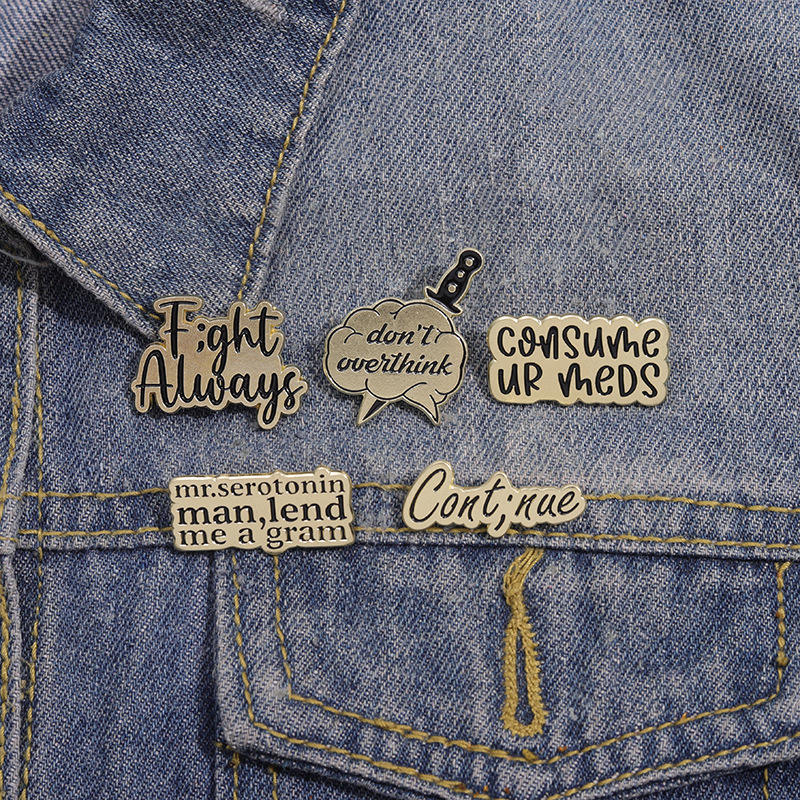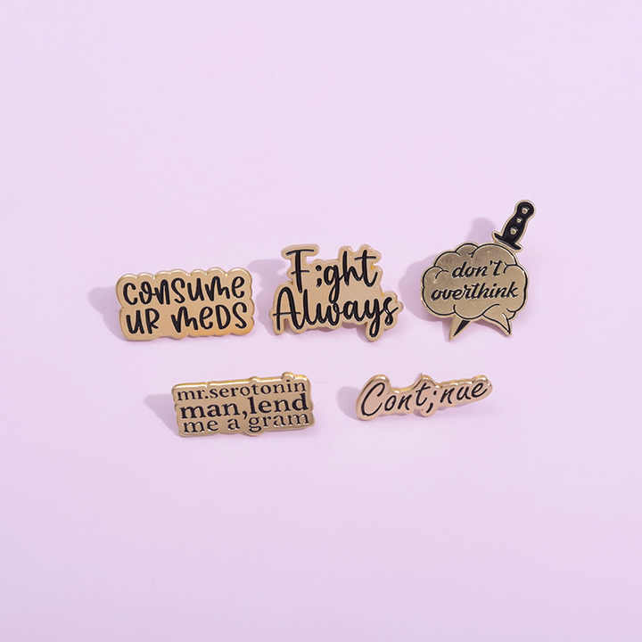 เข็มกลัดแฟชั่นคุณภาพสูงจากสังกะสีอัลลอยสีทอง3D 2D สลักตัวอักษรภาษาอังกฤษเข็มกลัดติดปกเสื้อสำหรับผู้หญิงผู้ชาย