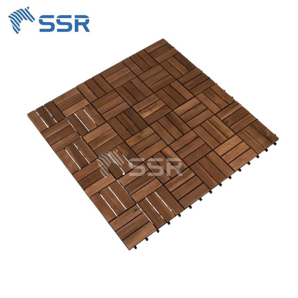 กระเบื้องพื้นไม้สักอะคาเซียสีน้ำตาลคุณภาพสูง 12 แผ่น สำหรับปูพื้นภายนอกแบบประกบกัน ป้องกันการลื่น เหมาะสำหรับระเบียง