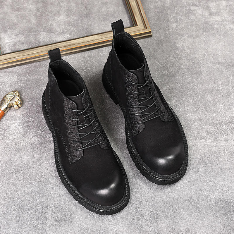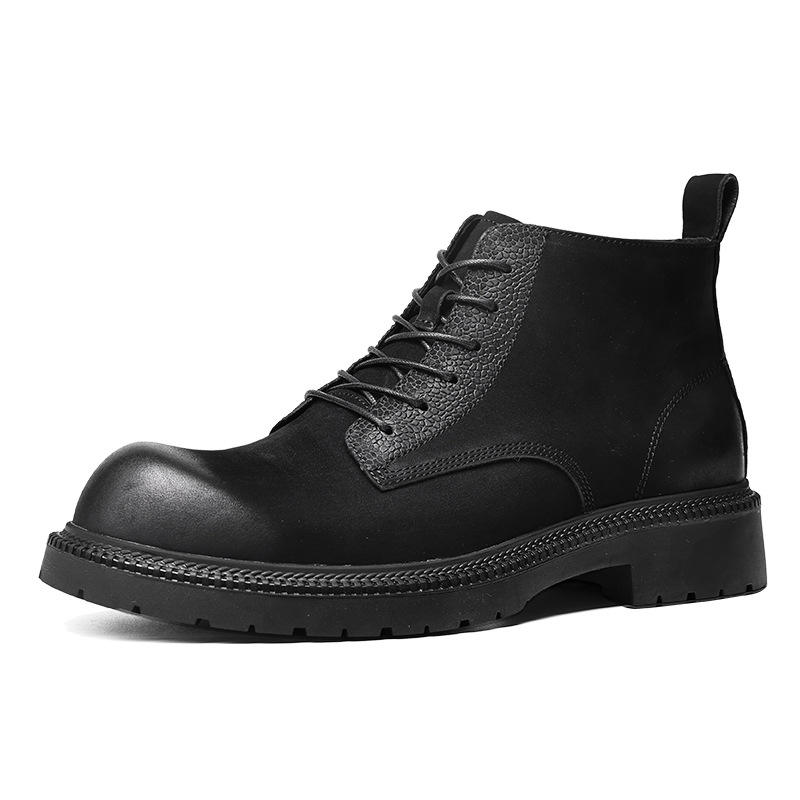 รองเท้าบูทหุ้มข้อสีน้ำตาลสำหรับผู้ชายรองเท้าหนังนิ่มหนังแท้ย้อนยุคกู๊ดเยียร์มีเชือกผูกกันน้ำ Z0130 qjmp