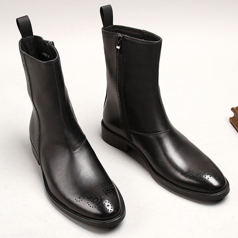 รองเท้าโมคาซินหนังแท้สีน้ำตาลคุณภาพสูงสำหรับผู้ชาย แบบผูกเชือกข้อเท้า กันน้ำ กันลื่น สไตล์เรโทร ทำมือ