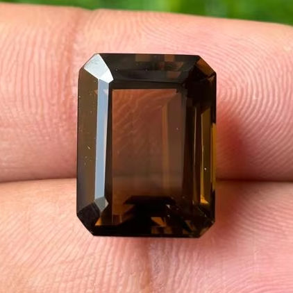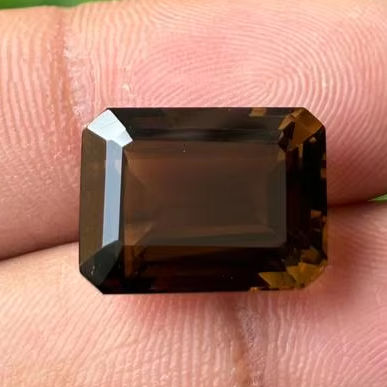 ควอตซ์สโมคกี้สีน้ำตาลธรรมชาติคุณภาพสูง ทรงบาแกตต์ ขัดเงา สำหรับทำเครื่องประดับ หินหลวม Sami Gems Hub SQ02 ขนาด 16x12x9 มม.