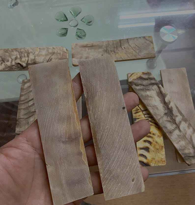 เกล็ดกระดูกควายมีหลายสีฮอร์นแบบหลายคอลโล่มีดเทวดาสไตล์สัตว์ความหนา127x38x8มม. ผลิตในอินเดีย