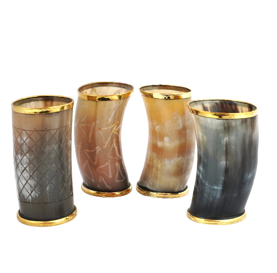 แก้วดื่มรูปเขาควายแท้งานประดิษฐ์ทำจากทองเหลืองรูปเขาควายแกะสลักด้วยมือ