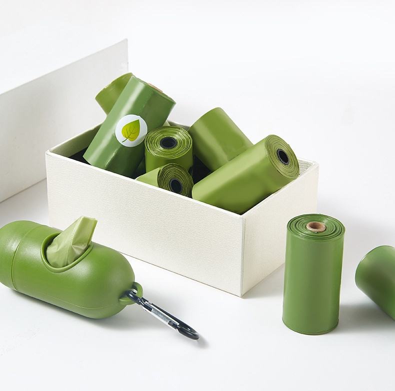 ถุงเก็บขยะสัตว์เลี้ยงแบบกำหนดเองคุณภาพสูงพร้อมม้วนที่เป็นมิตรกับสิ่งแวดล้อมออกแบบมาเพื่อใช้งานกลางแจ้งได้ง่าย