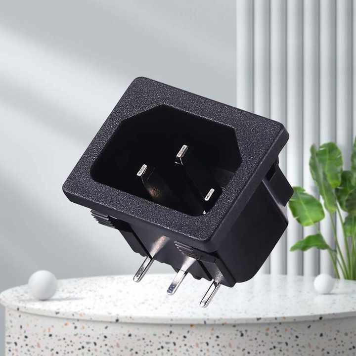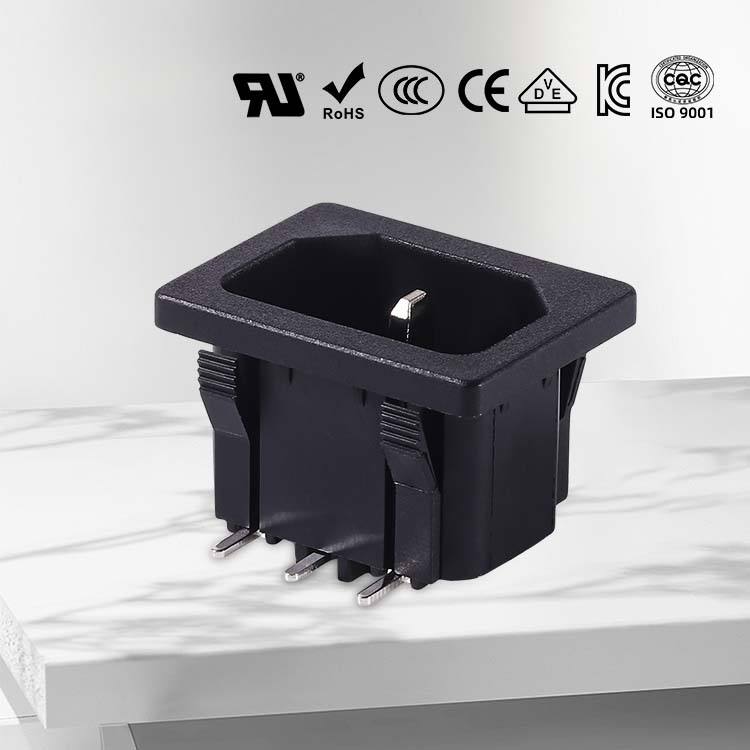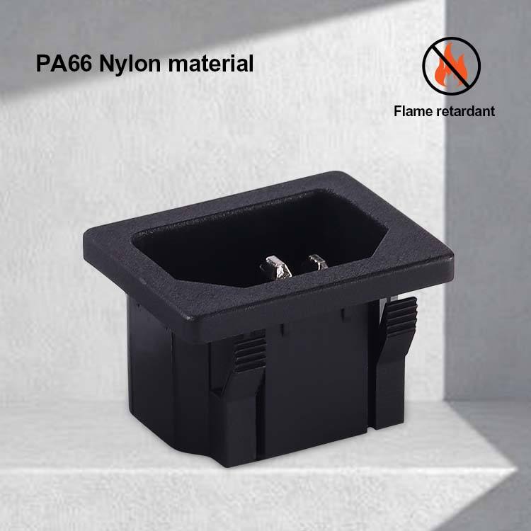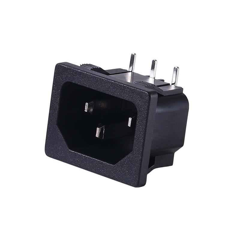 ขั้วต่อซ็อกเก็ต AC ตัวผู้ C14 3ขาวัสดุ PA66 10/15A กระแสไฟเกรดใช้ในเชิงพาณิชย์มาตรฐาน IEC Leki