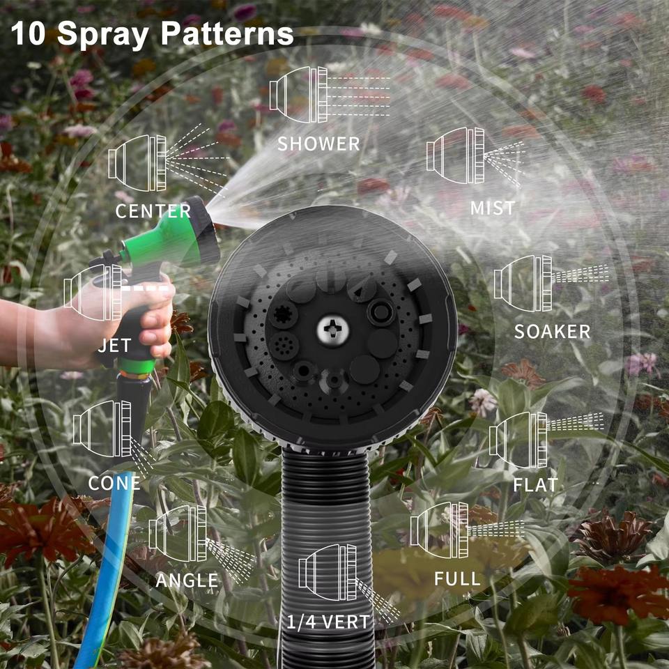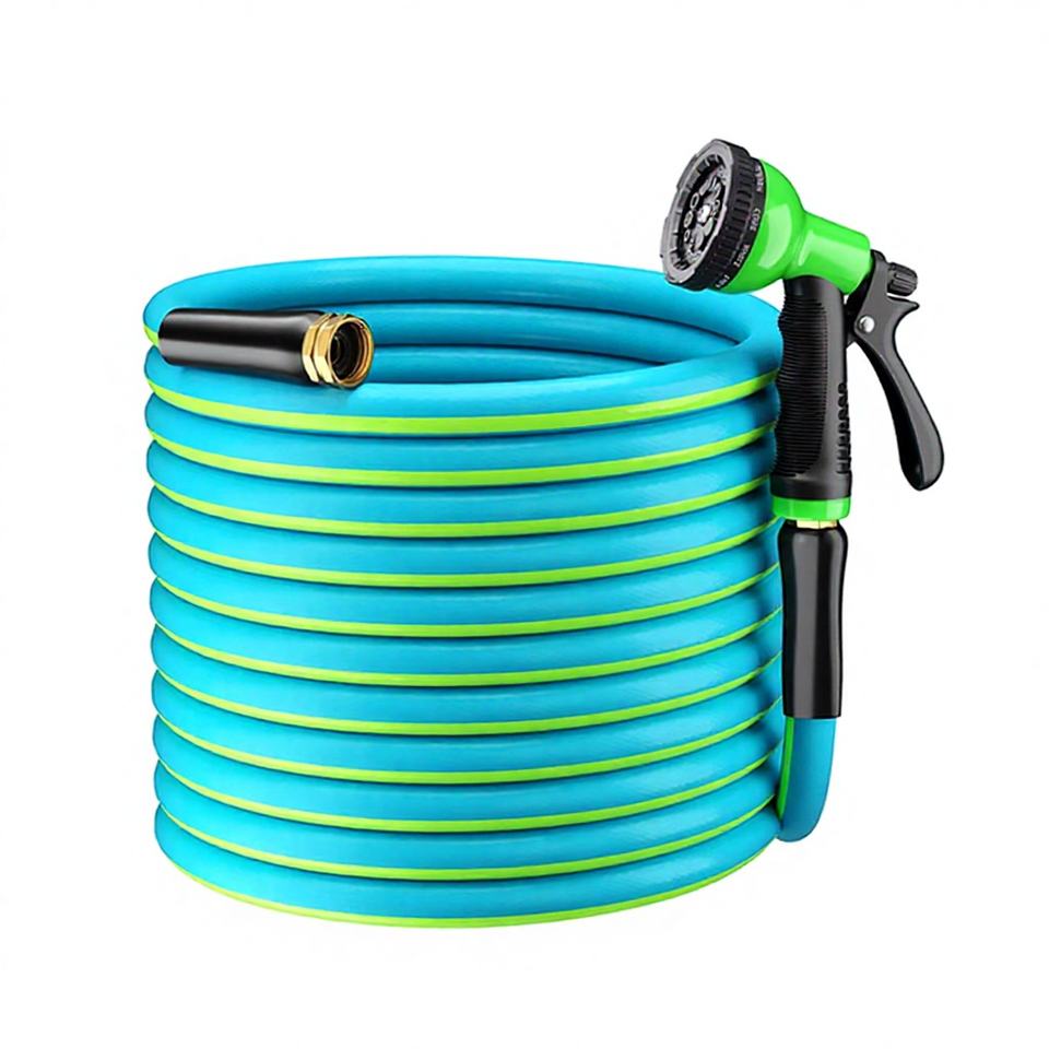 สายยางรดน้ำ PVC คุณภาพสูง มาตรฐาน CNS ขนาด 25-100 ฟุต ทนแรงดันสูง เส้นผ่านศูนย์กลางภายใน 5/8 นิ้ว แบบยืดหยุ่น พร้อมหัวฉีด 10 ฟังก์ชั่น
