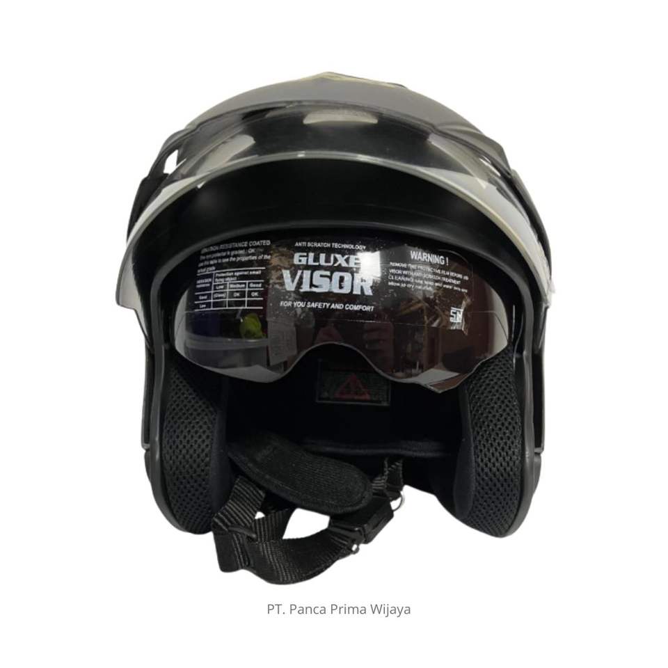 หมวกกันน็อคครึ่งใบ CRX Arrow-2 คุณภาพสูง สีดำด้าน พร้อมแผ่นบังหน้ามาตรฐาน ผลิตจากวัสดุ ABS ได้รับการรับรองมาตรฐาน SNI สำหรับผู้ใหญ่