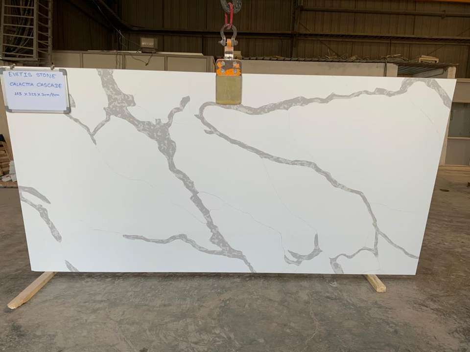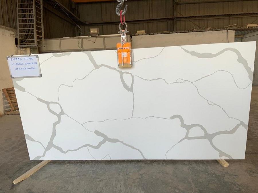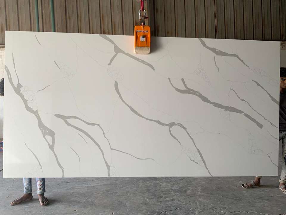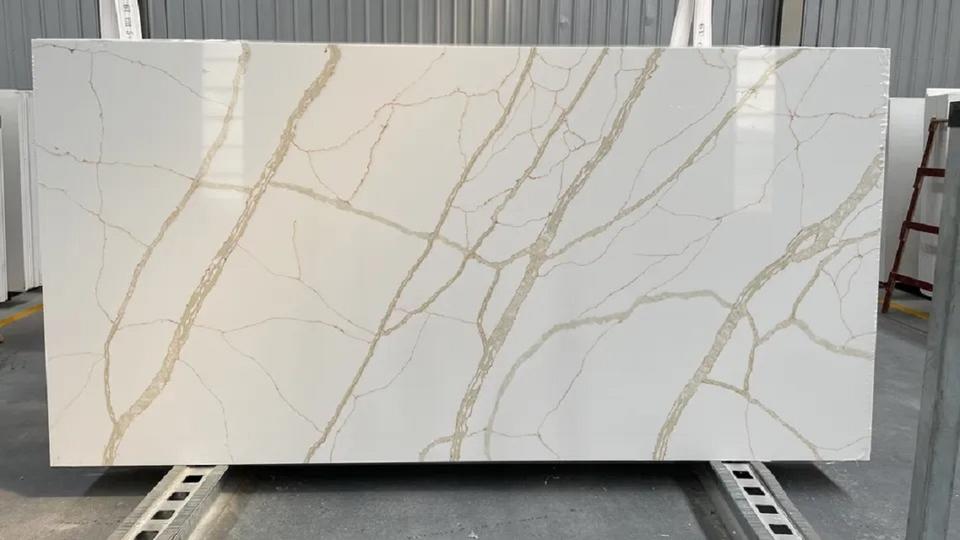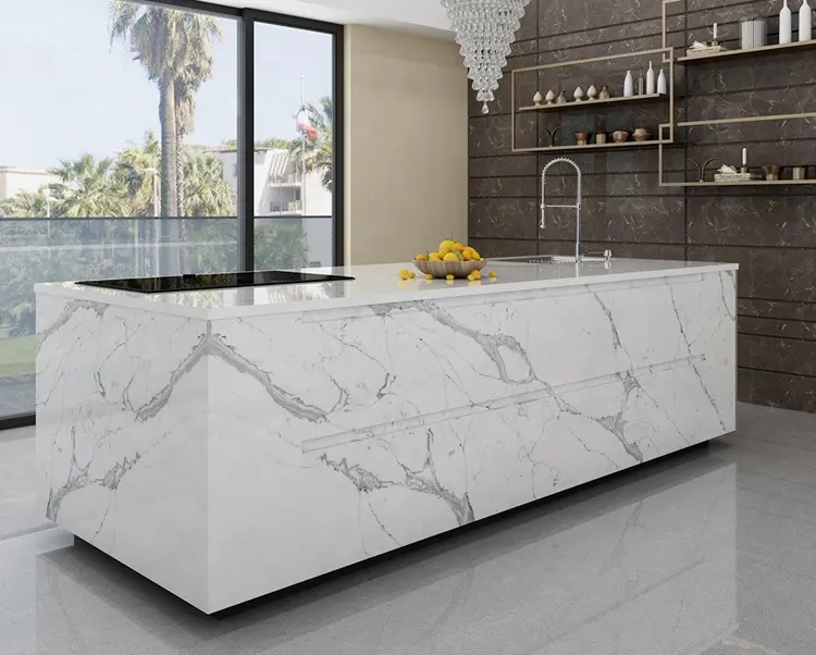 Calacatta แผ่นหินควอตซ์สีขาวหินเทียมสำหรับเคาน์เตอร์ครัว