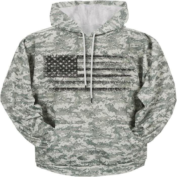 เสื้อฮู้ดแขนยาวลายพรางคุณภาพสูง ทรงคลาสสิก มีเชือกผูกสำหรับผู้ชาย