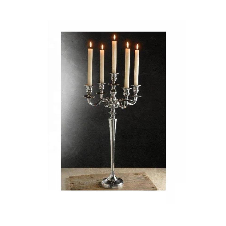 เชิงเทียนอลูมิเนียมหล่อบนโต๊ะพร้อมที่ใส่เทียนขัดเงาของตกแต่งบ้านในโอกาสเทศกาล