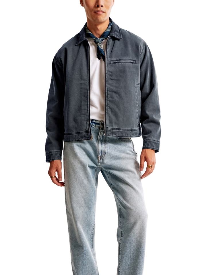 แจ็กเก็ตยีนส์สำหรับผู้ชายสไตล์ไม่ซ้ำใครคุณภาพพรีเมียมปักผ้าใบอย่างเป็นทางการปรับแต่งได้