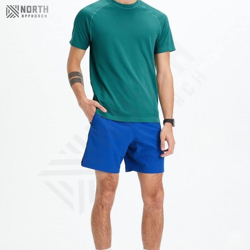 กางเกงขาสั้นผ้าใบผ้าถักเอวยางยืดระบายอากาศได้ดีสำหรับผู้ชายกางเกงขาสั้นสำหรับฝึกซ้อมสีพื้นออกแบบได้ตามต้องการ