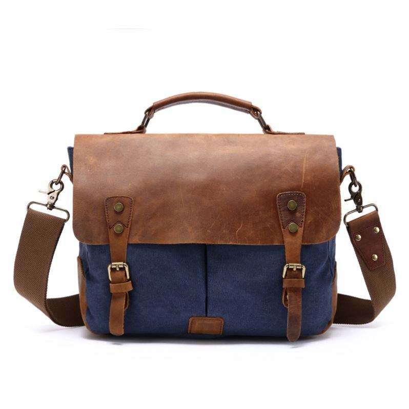 กระเป๋าผ้าใบสะพายไหล่ทรงสี่เหลี่ยมกระเป๋าใส่แล็ปท็อปกระเป๋าเอกสารแนววินเทจสำหรับผู้ชาย
