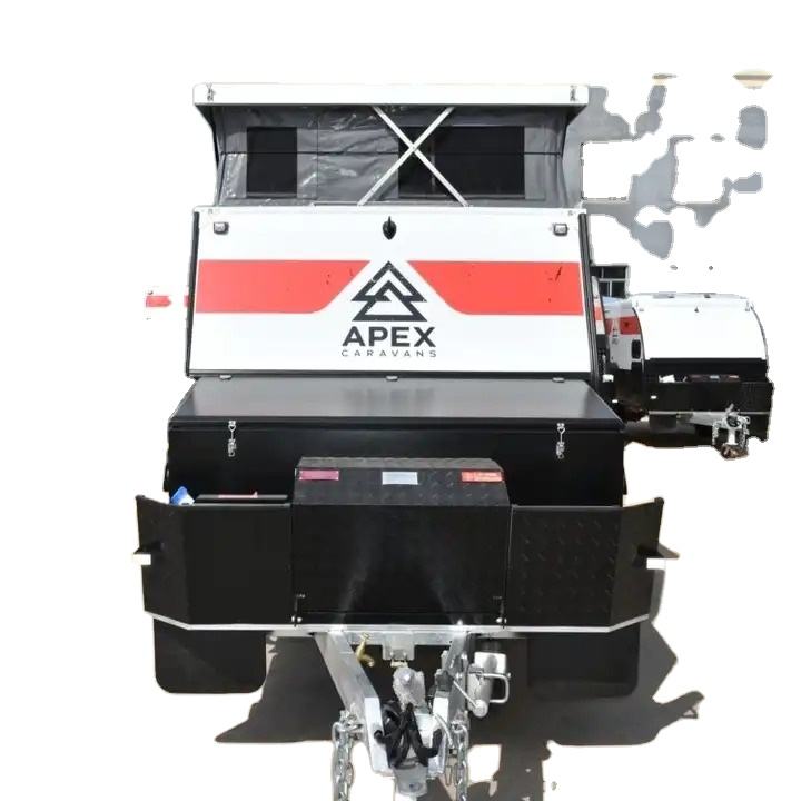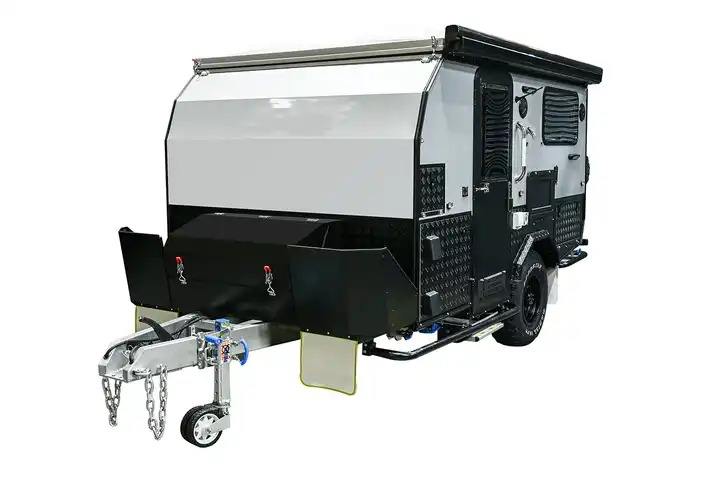 รถพ่วงสำหรับตั้งแคมป์แบบอิสระรถมอเตอร์ไซด์ไฟเบอร์กลาสขนาดเล็กพร้อมฟังก์ชั่นเคลื่อนย้ายได้และรองรับเต็นท์สำหรับตั้งแคมป์