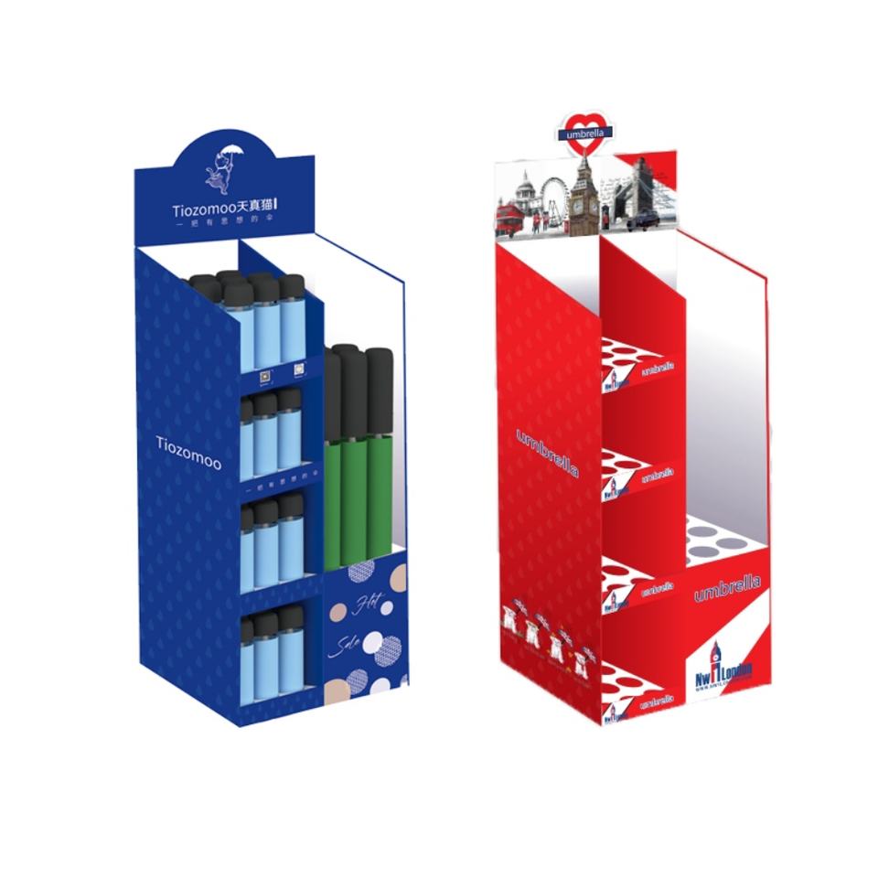 ชั้นวางแสดงสินค้าร่มกระดาษแข็งคุณภาพสูง ชั้นวางแสดงสินค้าแบบตั้งพื้นสำหรับจุดขาย ชั้นวางแสดงสินค้าอุปกรณ์กันฝนในโชว์รูม