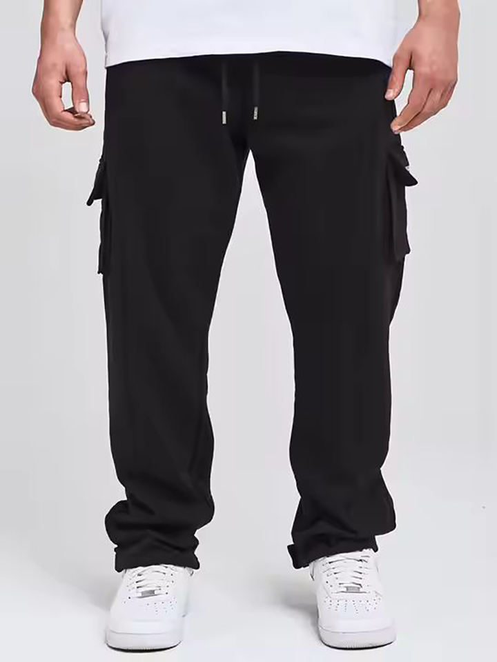 กางเกงคาร์โก้ขายาวสำหรับผู้ชายกางเกงวอร์มทรงแบ็กกี้แบบผูกเชือกกระเป๋าข้างตรง
