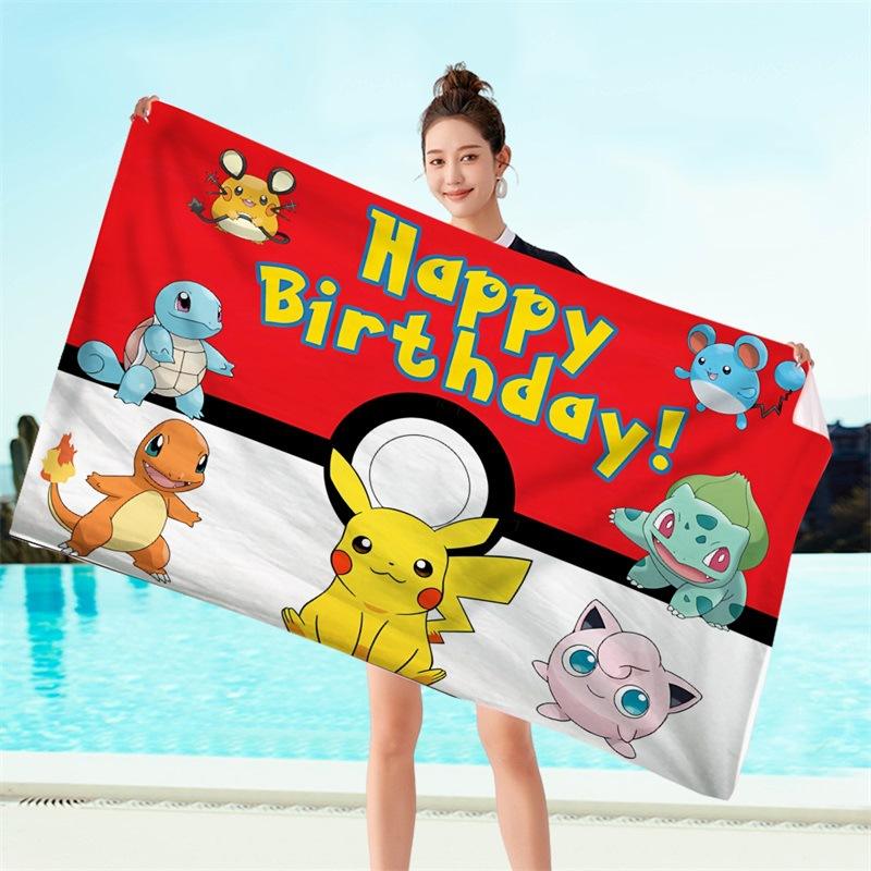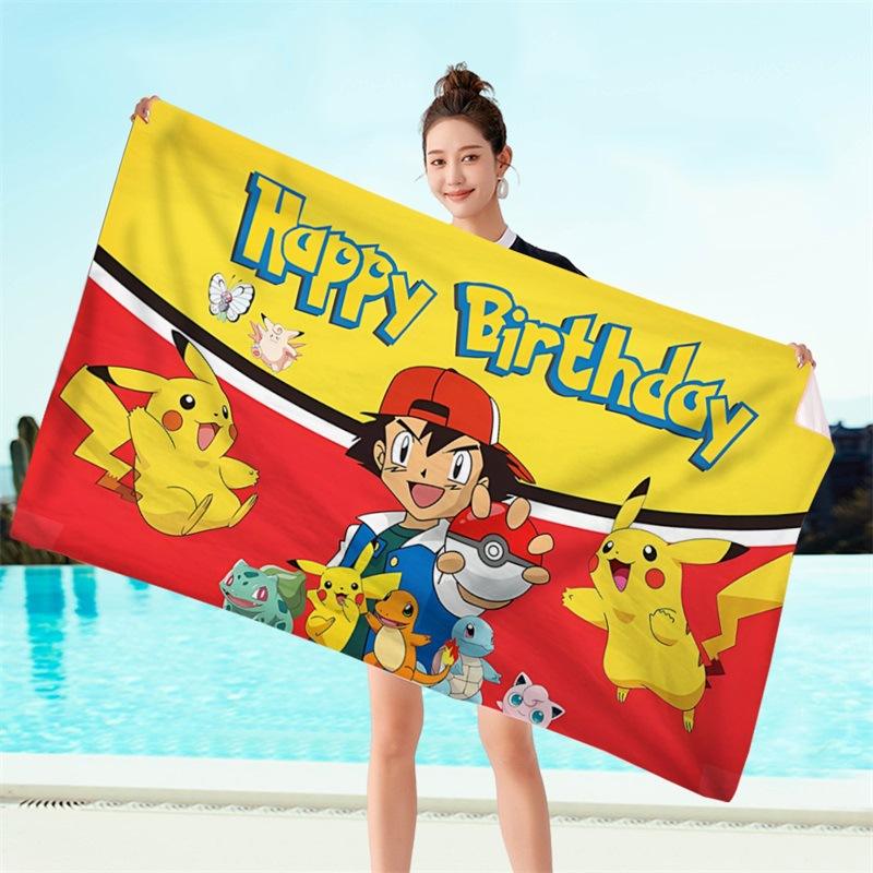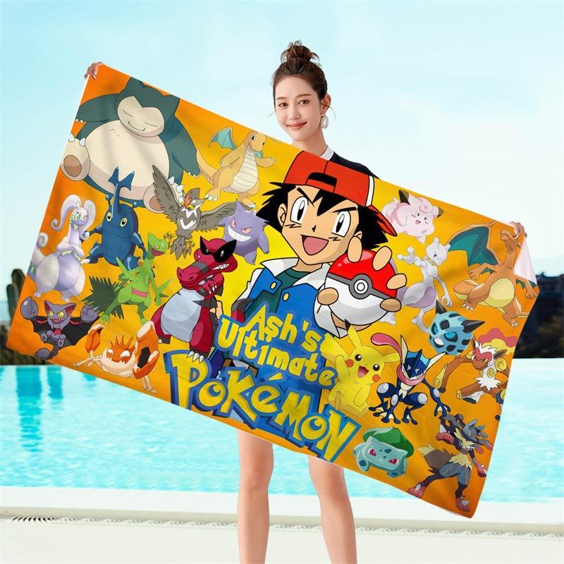 ผ้าขนหนูเด็กคุณภาพสูงลายการ์ตูนโปเกมอน ขนาดใหญ่ เนื้อไมโครไฟเบอร์นุ่มพิเศษ ซึมซับน้ำได้ดี แห้งเร็ว เหมาะสำหรับสระว่ายน้ำ ท่องเที่ยว อาบน้ำ และชายหาด
