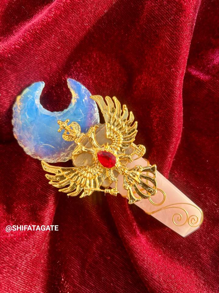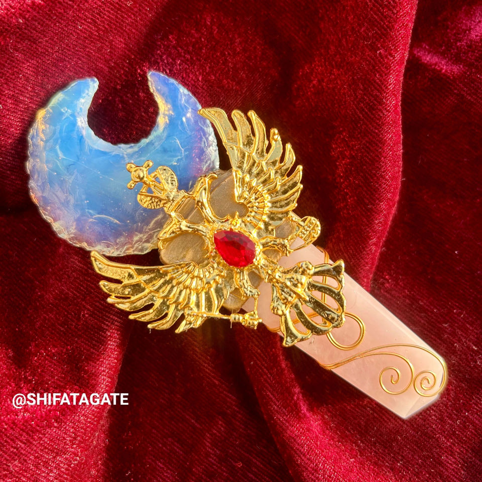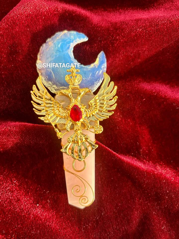 หินควอตซ์แกะสลักคุณภาพสูงไม้กายสิทธิ์โอปอลไลท์เสารักพระจันทร์เสี้ยวทองนกอินทรีคริสตัลรักษาธรรมชาติ