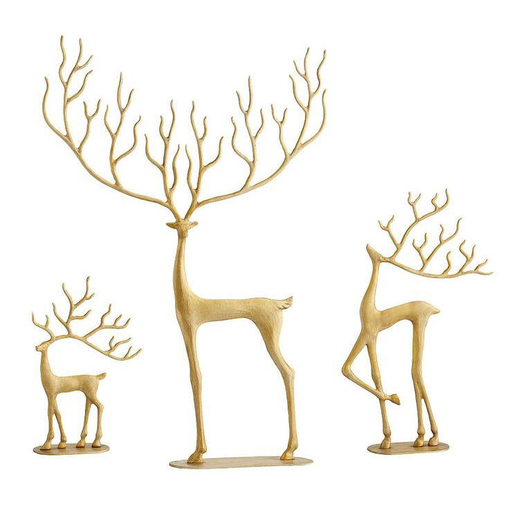 รูปปั้นกวางเรนเดียร์คริสต์มาสอะลูมิเนียมหล่อคุณภาพสูง พร้อมสีและขนาดที่ปรับแต่งได้ ใช้ซ้ำได้สำหรับของขวัญเทศกาลและตกแต่งบ้าน