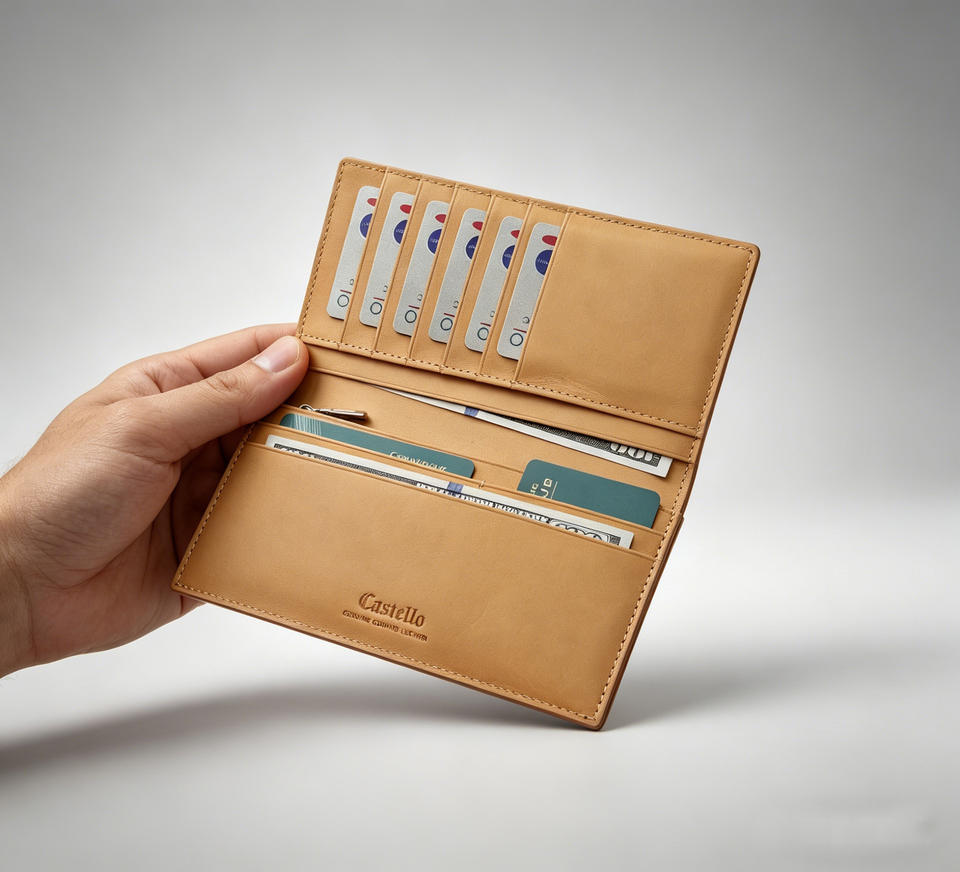 กระเป๋าสตางค์หนังวัวแท้ Castello รุ่นบางยาว เปิดปิดง่าย คุณภาพสูง ผลิตจากโพลีเอสเตอร์ สำหรับผู้ชาย ผู้หญิง และทุกเพศ