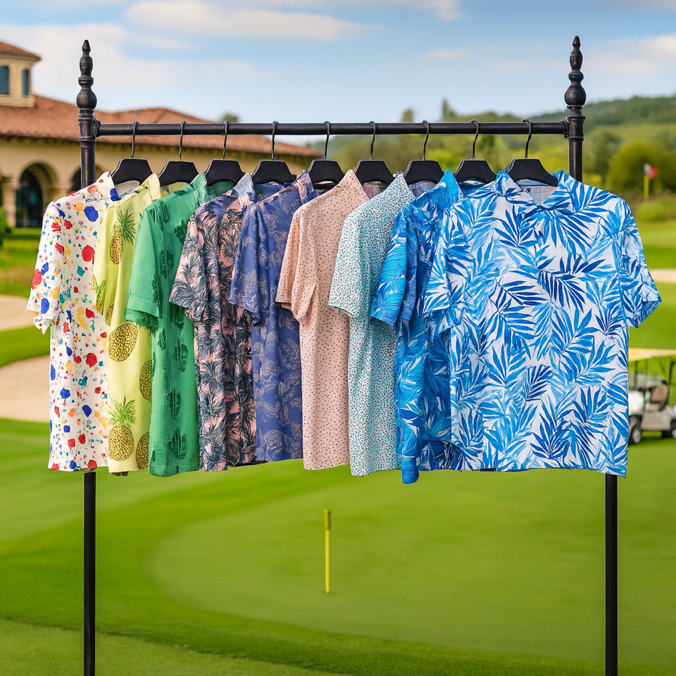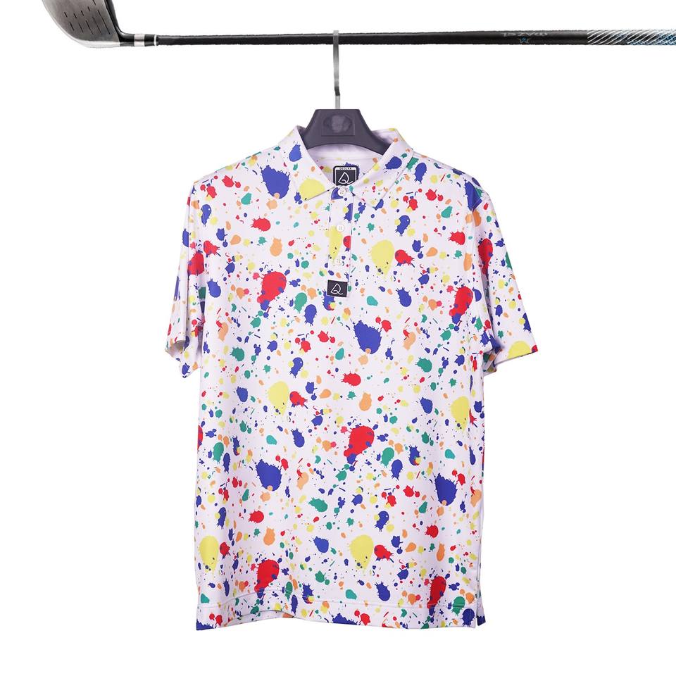 เสื้อโปโลกอล์ฟคุณภาพสูง ผลิตจากโพลีเอสเตอร์ 88% สแปนเด็กซ์ 12% ระบายเหงื่อได้ดี พิมพ์ลายแบบซับลิเมชั่น รับสกรีนโลโก้ตามสั่ง