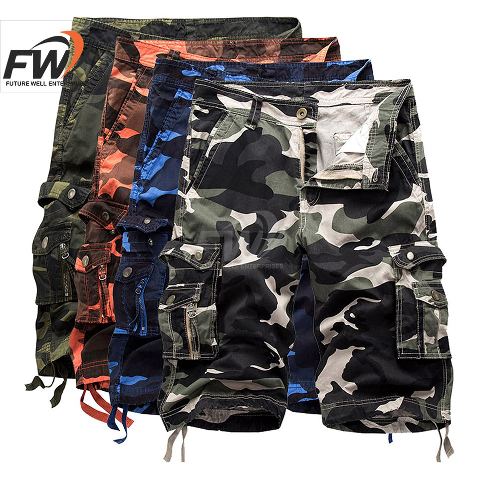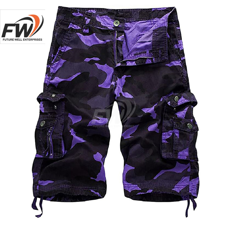 กางเกงขาสั้นคาร์โก้ลายพรางคุณภาพสูงพร้อมป้ายปักลาย กางเกงขาสั้นคาร์โก้ลายพรางสไตล์เท่ๆ สำหรับผู้ชาย สั่งซื้อขั้นต่ำน้อย