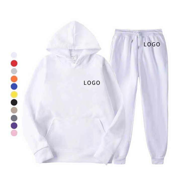 ชุดลำลองคุณภาพสูง ผ้าฝ้ายถักเนื้อนุ่ม ชุดวอร์มขายาวสำหรับผู้หญิง เสื้อฮู้ดแบบสวมหัวสีพื้นและกางเกงขายาว