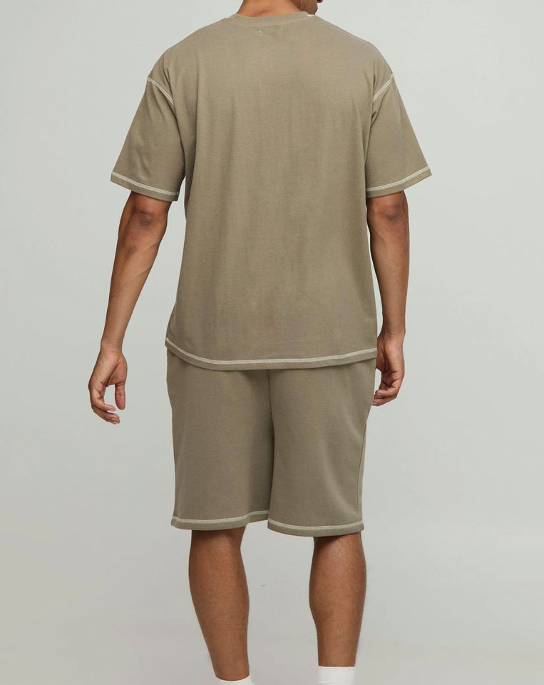 ชุดลำลองคุณภาพสูงสำหรับผู้ชาย 2 ชิ้น เสื้อยืด กางเกงขาสั้น ผ้าถักลายเสือดาว ซักแบบ Acid Wash ทำจากใยไผ่ 100% แห้งเร็ว ทรงโอเวอร์ไซส์