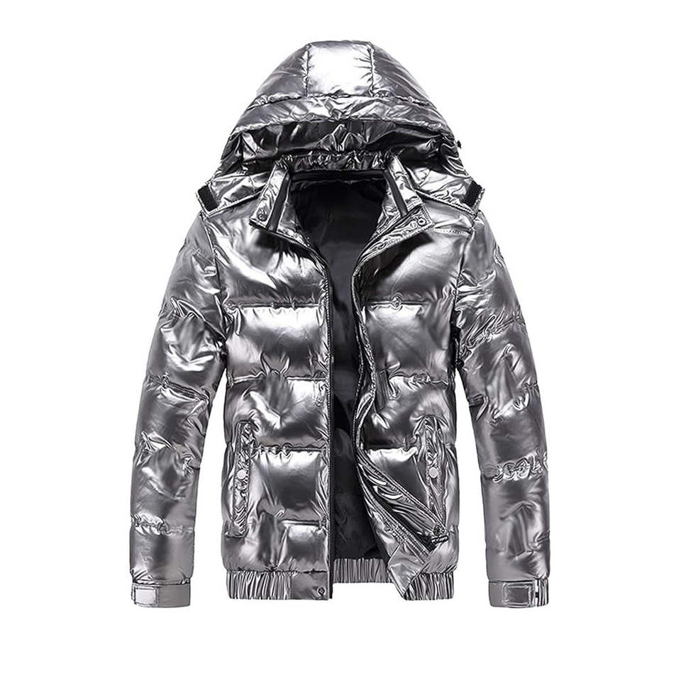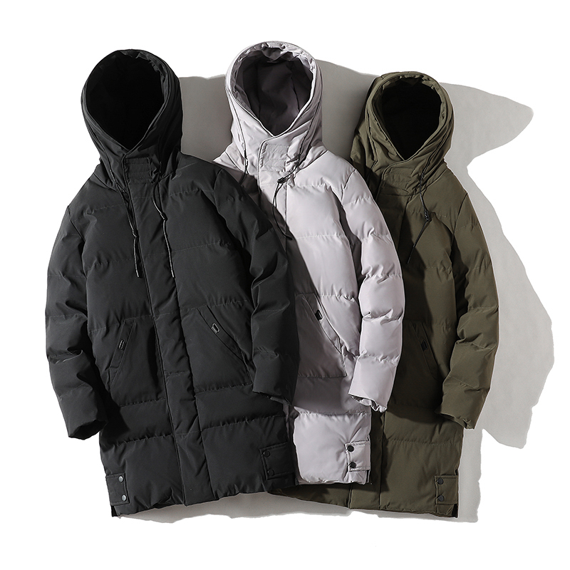 เสื้อแจ็คเก็ตผู้ชายแบบสบายๆ คุณภาพสูง ผ้าไม่ถักทอ ทรงพัฟเฟอร์ สำหรับฤดูใบไม้ร่วงและฤดูหนาว คอตั้ง บุผ้าฝ้าย ลายเรียบ มีฮู้ด พร้อมโลโก้ด้านหน้า