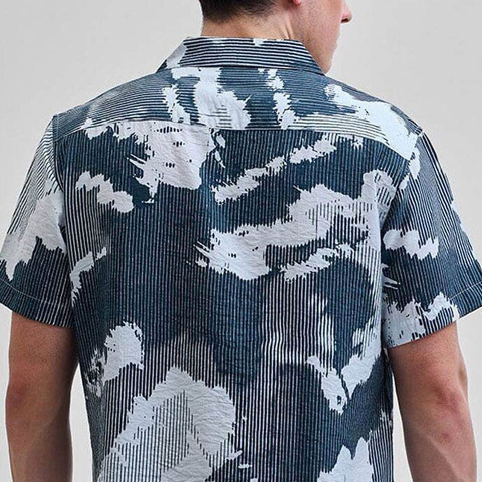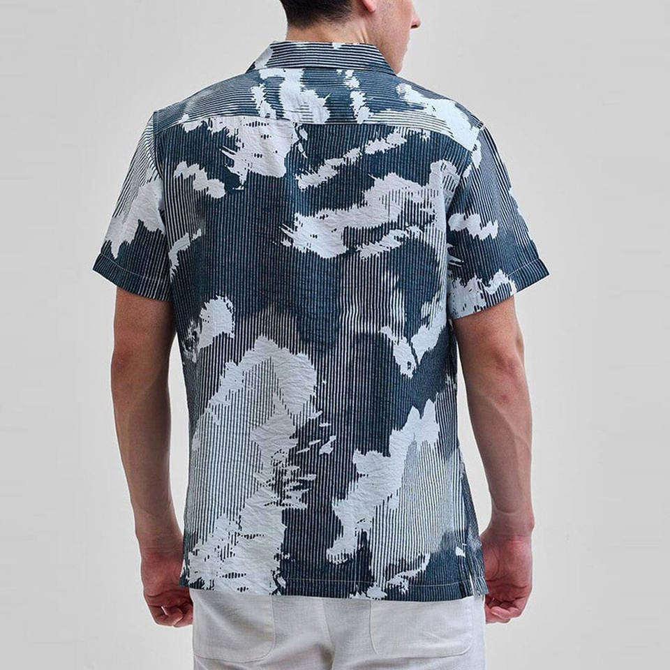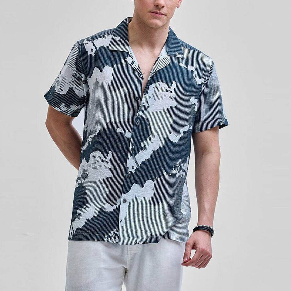 เสื้อเชิ้ตคอปกรูปตัววีสไตล์คิวบาสำหรับผู้ชาย แฟชั่นอินเทรนด์