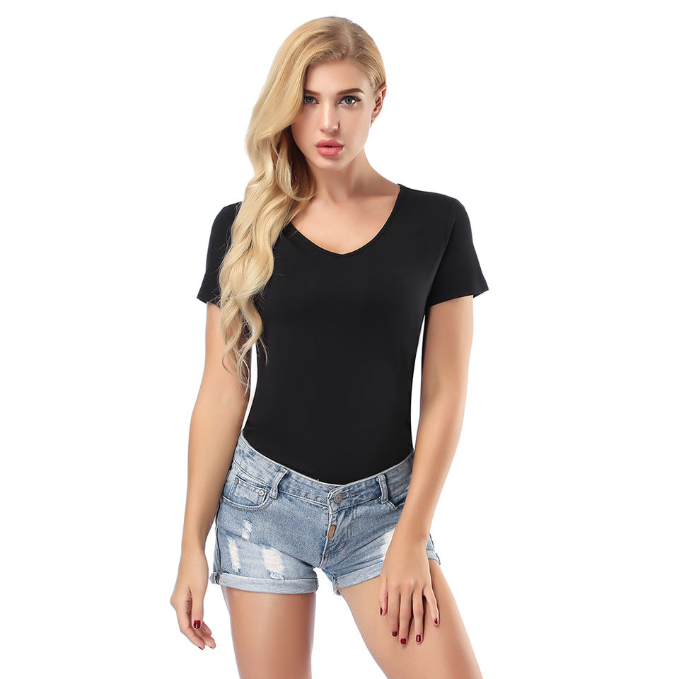 High Quality Casual Solid Color Women Plain Fashion V Neck T Shirt Simple Comfortable Blank T Shirt Custom T-shirt for men