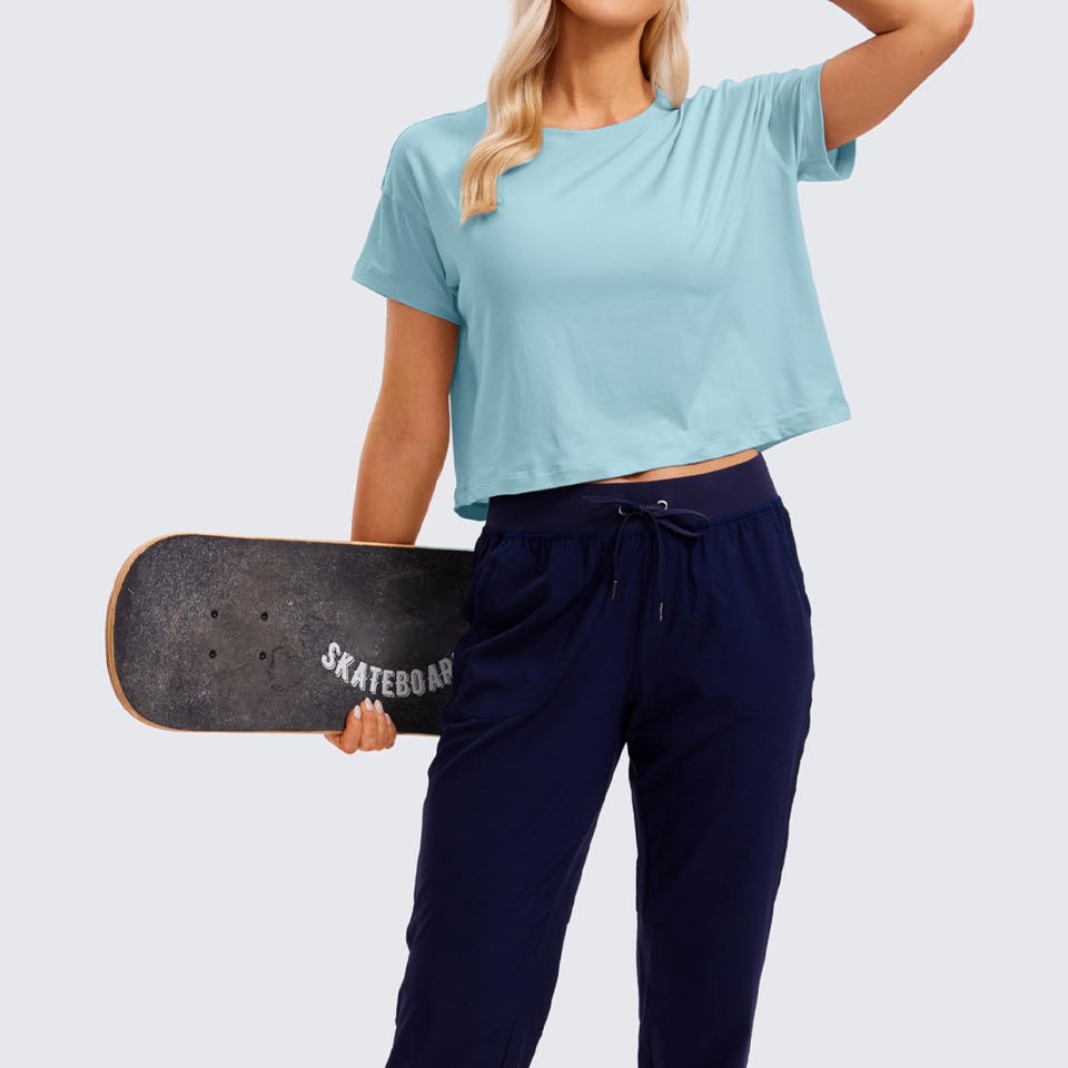 ชื่อผลิตภัณฑ์:เสื้อยืดเอวลอยสำหรับผู้หญิง
